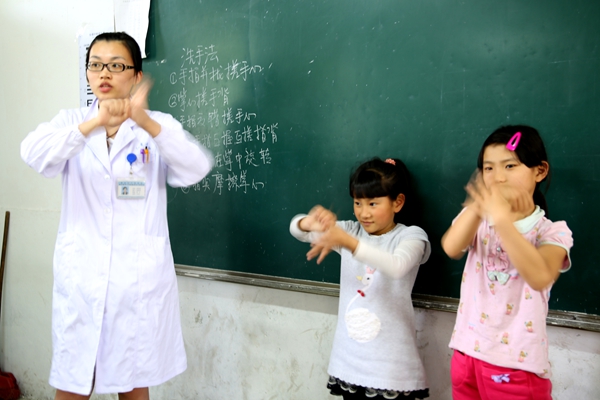 技术团支部作为此次活动的主要参与者,在此之前精心准备制备了“认识细菌和病毒”以及“如何正确洗手”内容以及图片。检验科高岭、曾晓辰为三个班级的小朋友上了生动一堂互动课。高岭为同学们讲解了什么是细菌、细菌长什么样子、 细菌在实验室是怎么生长的、细菌都是有害的吗;什么是病毒、病毒长什么样、病毒能够引起那些常见的疾病、病毒都是有害的吗、怎样预防细菌和病毒感染,同时配以细菌病毒的图片展示给同学们学习认识,并且跟同学现场互动交流,在相互交流中让同学们认识病毒与细菌。曾晓辰则示范了正确的洗手方式,告诉同学们什么情况要洗手,并现场展示与同学一起互动现场洗手,志愿者们通过图片展示以及生动有趣的授课方式受到同学们欢迎。此外,学生志愿者们为同学们进行了身高、体重、口腔、视力等方面的体检,并为三个班级同学上了一堂“养成卫生好习惯”的卫生课。