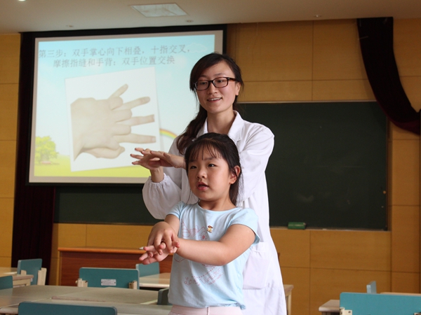 6月10日下午,院团委组织青年文明号志愿者来到汉口路小学,为100余名同学上了一堂生动的卫生课。