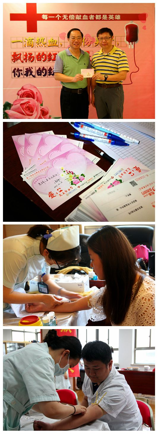 8点不到,献血会场门口就已经自发排起了长龙,献血队伍中有刚刚下夜班的护士、有休息在家依然赶来医院献血的医生、有刚参加工作的新进员工、也有急等献完血就回到工作岗位的后勤机关人员,整个填表、测血压、化验、采血的过程都井然有序的进行着,每一个人的脸上都洋溢着幸福的笑容。当大家伸出手臂,鲜红的血液流出身体时,所有人都明白它的价值,在这里,真情在挥洒,爱心在传承。很多献血志愿者在“爱心传递卡”上写下“早日康复”、“你的康复就是我的幸福”等最真挚的祝福心语,希望通过这项爱心接力,将爱的正能量辐射到社会的每一个角落。
