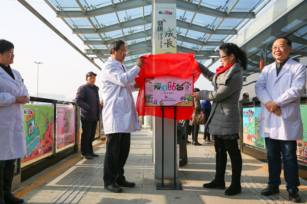河西有轨电车友谊街站台紧邻南京市儿童医院河西分院,为更好为就诊儿童及家长提供服务,医院携手电车公司,将友谊街站台打造成“爱心站台”。在站台环境设置上,主要通过生动有趣的画面形式倡导奉献爱心、关爱儿童、弘扬传统美德。医院还为站台还配备了爱心药箱、爱心雨伞和爱心坐垫等便民设施。此外,电车公司还专门配备了一辆主题爱心专列,由医院定期更新儿童健康护理知识,让家长在乘车的同时又能解更好的了解儿童日常护理小常识。有趣的画面及站台、车厢的周到的布置,不仅让候车儿童及家长感到无限的乐趣,更让广大市民体会到现代电车公司温馨周到的服务。