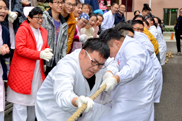 12月27、28日下午,91直播 分别在两个院区举办迎新年拔河比赛。经过紧张的角逐,外科分工会获得河西院区冠军,机关、后勤、技术、门急诊分工会联队获得亚军。临床综合分工会获得广州路院区冠军,门急诊分工会获得亚军。(工会)