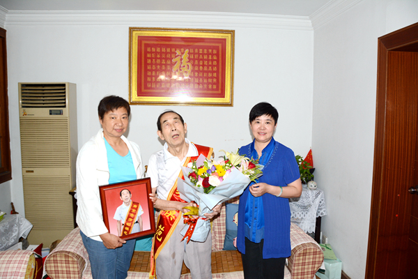 9月19日上午,由市卫健委机关党委书记王桂山和市科教卫体工会联合会主席唐医文带队,在91直播 党委书记黄松明和副书记范文雄的陪同下,亲切走访慰问了91直播 70岁以上劳模。给他们献上一束鲜花、送上一封慰问信、发放一份慰问金、拍摄一张劳模肖像照,并详细询问了老劳模们的生活情况,对他们为国家、为社会做出的贡献表示感谢,并嘱咐他们保重身体,祝福他们幸福安康。(工会)