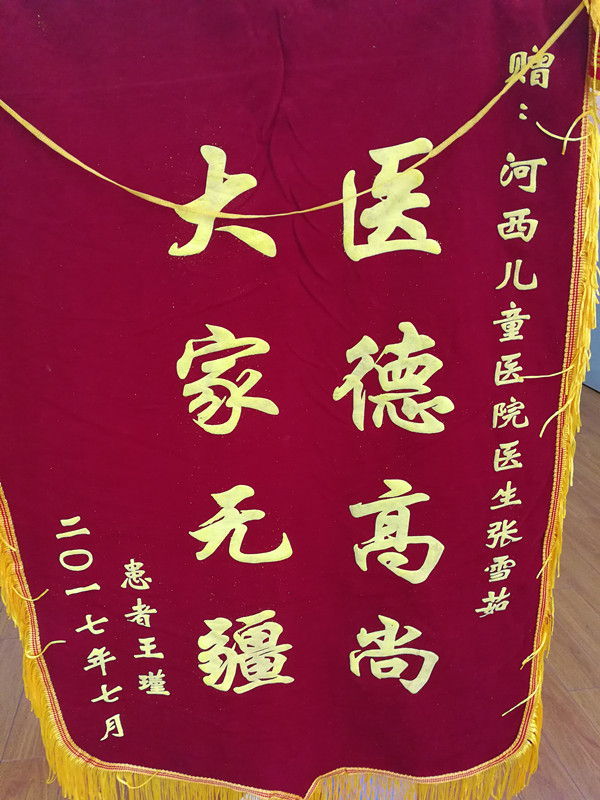 赠:河西儿童医院医生张雪茹医德高尚 大家无疆患者王瑾二〇一七年七月