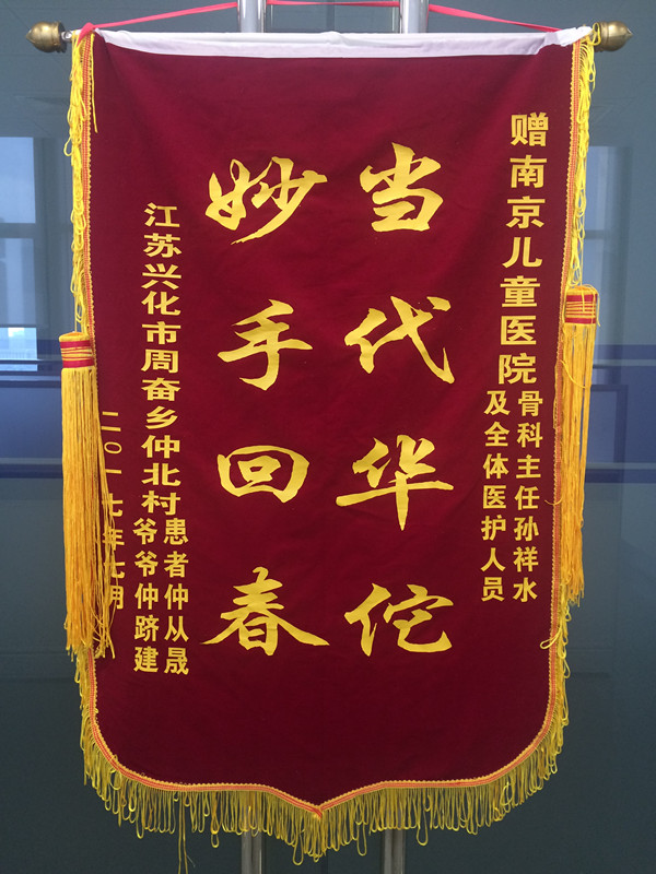 赠南京儿童医院骨科主任孙祥水及全体医护人员当代华佗 妙手回春江苏兴化市周奋乡仲北村患者仲从晟 爷爷仲跻建二〇一七年七月