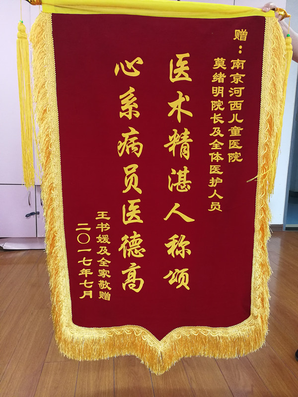 赠:南京河西儿童医院 莫绪明院长及全体医护人员医术精湛人称颂 心系病员医德高王书媛及全家敬赠二〇一七年七月