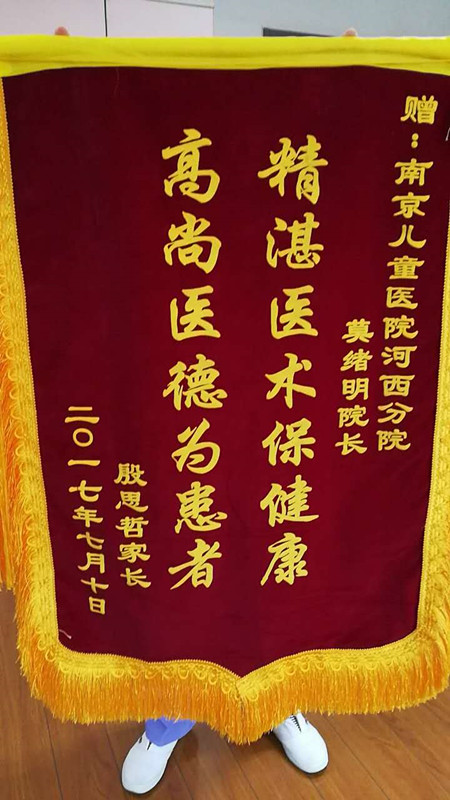 赠:南京儿童医院河西分院 莫绪明院长精湛医术保健康 高尚医德为患者殷思哲家长二〇一七年七月十日