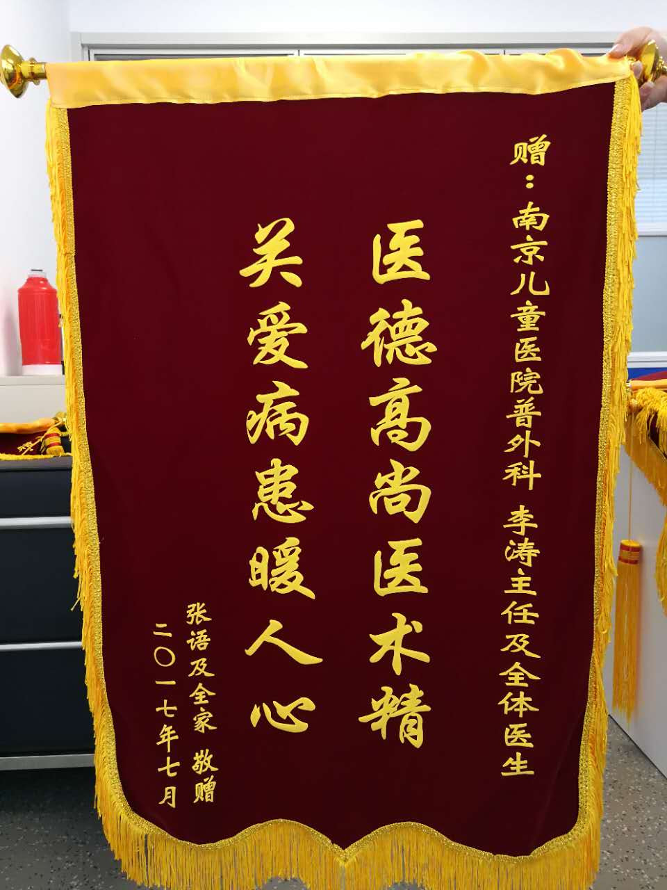 赠:南京儿童医院普外科 李涛主任及全体医生医德高尚医术精 关爱病患暖人心张语及全家 敬赠二〇一七年七月