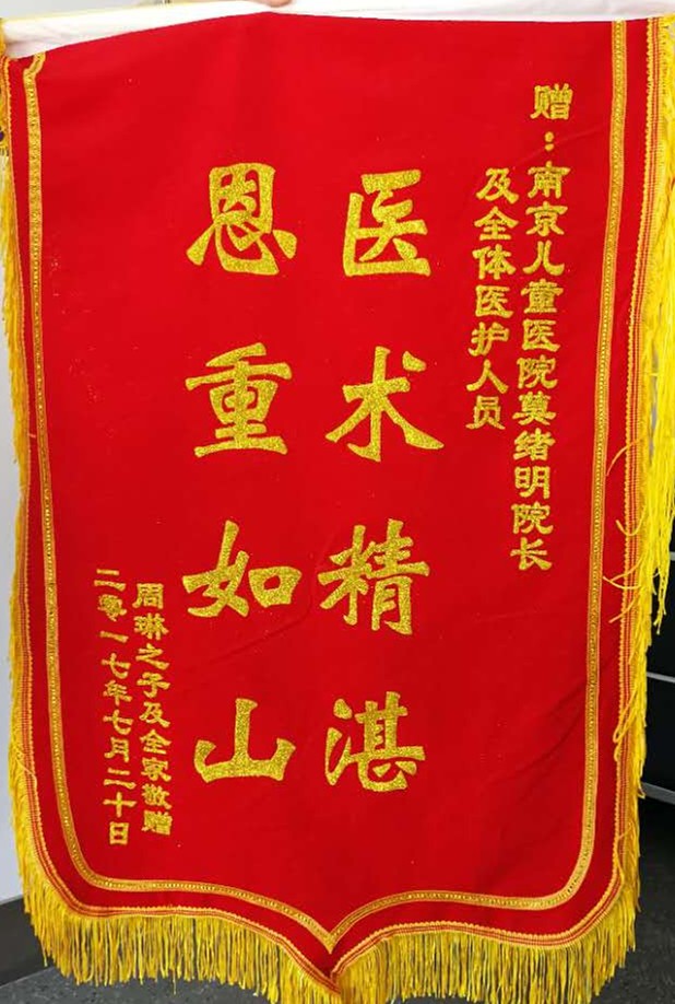 赠:南京儿童医院莫绪明院长及全体医护人员医术精湛 恩重如山周琳之子及全家敬赠二零一七年七月二十日
