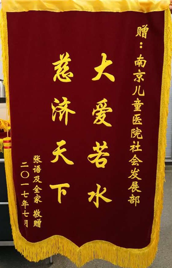 赠:南京儿童医院社会发展部大爱若水 慈济天下张语及全家 敬赠二〇一七年七月