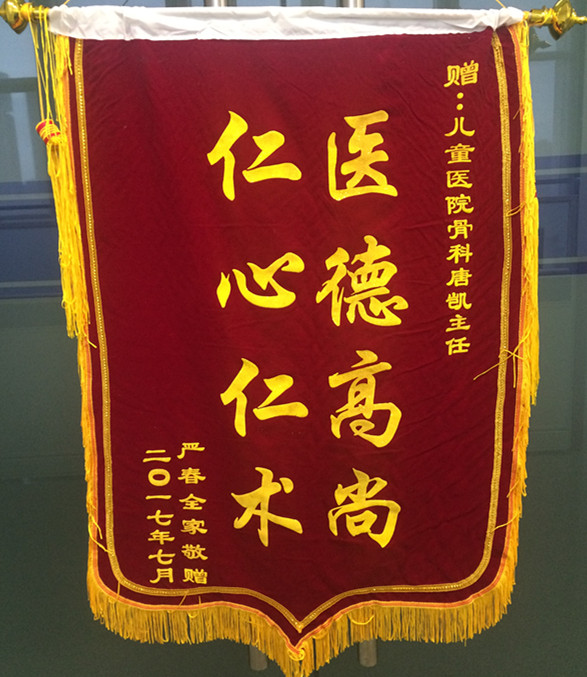 赠:儿童医院骨科唐凯主任医德高尚 仁心仁术严春全家敬赠二〇一七年七月