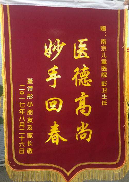 赠:南京儿童医院 彭卫主任医德高尚 妙手回春董诗彤小朋友及家长敬二〇一七年八月二十六日