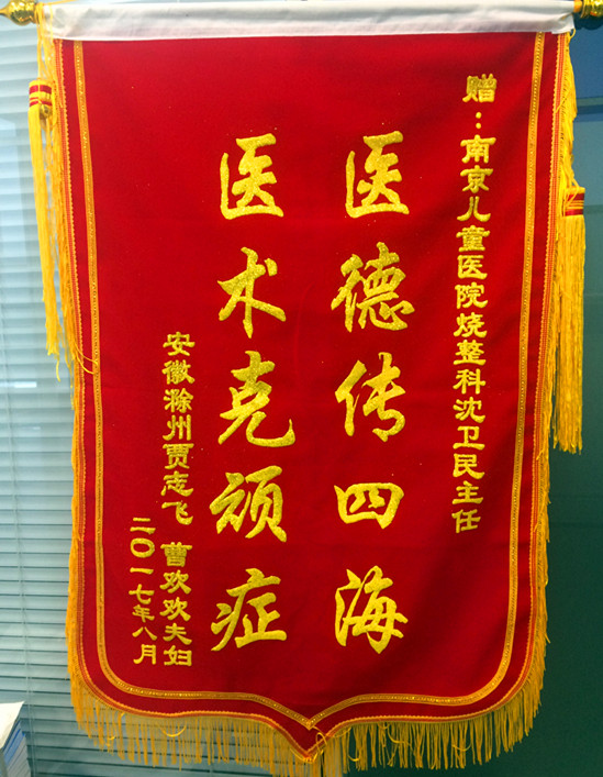 赠:南京儿童医院烧整科沈卫民主任医德传四海 医术克顽症安徽滁州贾志飞 曹欢欢夫妇二〇一七年八月