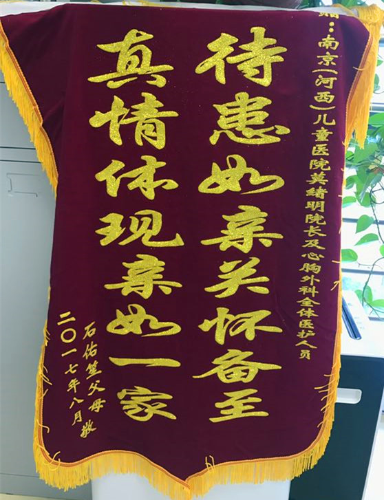 赠:南京(河西)儿童医院莫绪明院长及心胸外科全体医护人员待患如亲关怀备至 真情体现亲如一家石佑生父母 敬二〇一七年八月