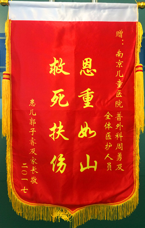 赠:南京儿童医院普外科周勇及全体医护人员恩重如山 救死扶伤患儿郭子睿及家长敬二〇一七