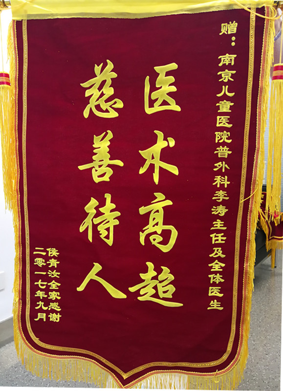 赠:南京儿童医院普外科李涛主任及全体医生医术高超 慈善待人侯青汝全家感谢二零一七年九月