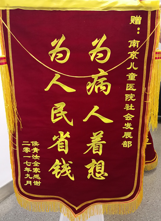 赠:南京儿童医院社会发展部为病人着想 为人民省钱侯青汝全家感谢二零一七年九月