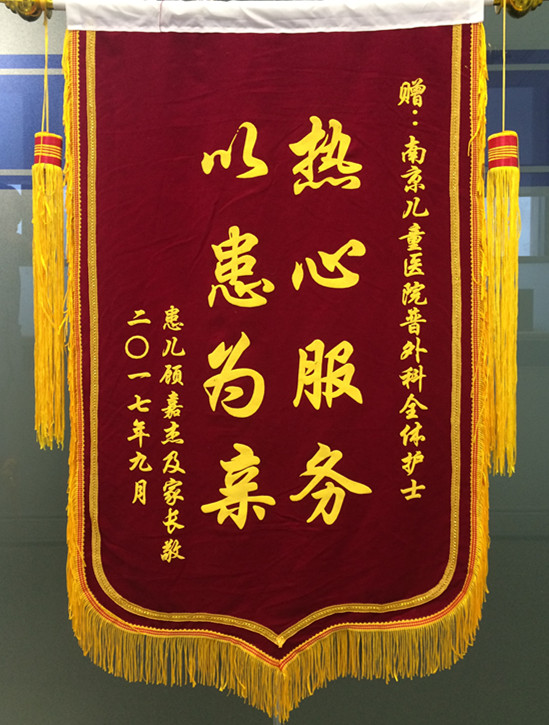 赠:南京儿童医院普外科全体护士热心服务 以患为亲患儿顾嘉杰及家长敬二〇一七年九月