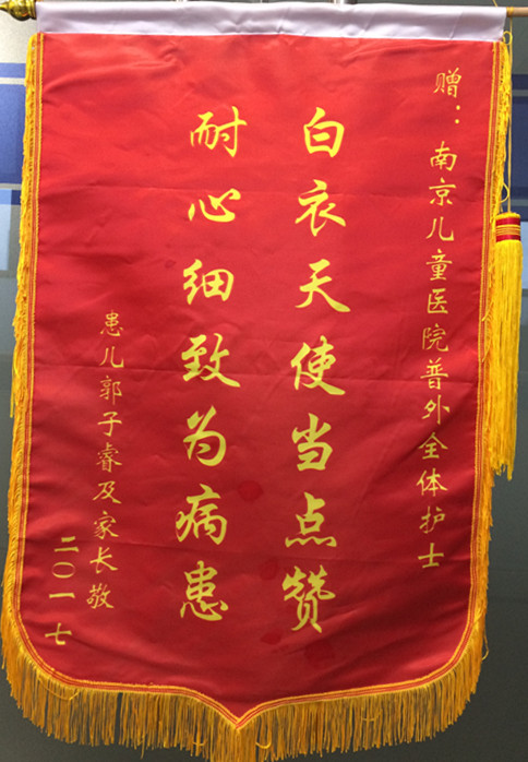 赠:南京儿童医院普外科全体护士白衣天使当点赞 耐心细致为病患患儿郭子睿及家长敬二〇一七