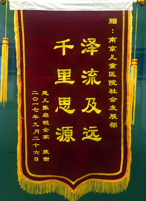 赠:南京儿童医院社会发展部泽流及远 千里思源患儿张启锐全家 致谢二〇一七年九月二十六日