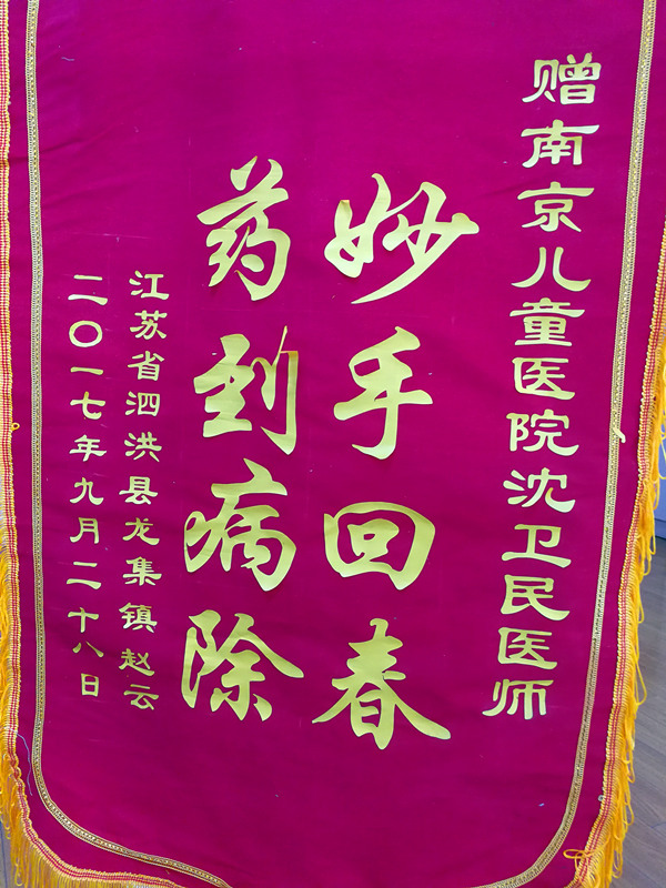 赠南京儿童医院沈卫民医师妙手回春 药到病除江苏省泗洪县龙集镇 赵云二〇一七年九月二十八日