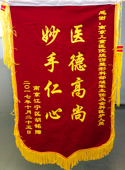 感谢:南京儿童医院烧伤整形科邹继军主任及全科医护人员医德高尚 妙手仁心南京江宁区胡铭赠二〇一七年十月二十五日