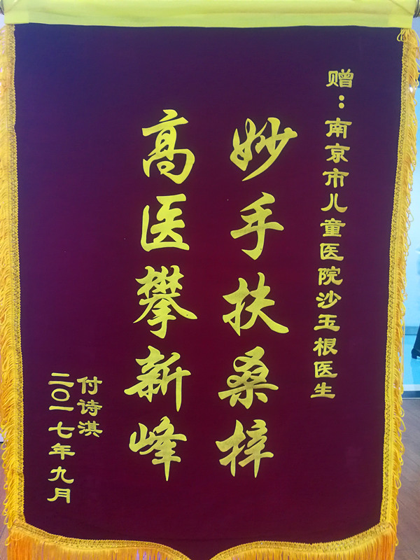 赠:南京市儿童医院沙玉根医生妙手扶桑梓 高医攀新峰付诗淇二〇一七年九月