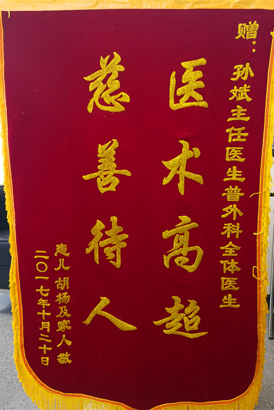 赠:孙斌主任医生普外科全体医生医术高超 慈善待人患儿胡杨及家人敬二〇一七年十月二十日