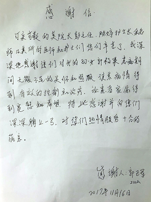 感谢信_心胸外科(210A病区)_20171117_莫绪明、彭卫、陈婷、余庆娣及其他医生护士