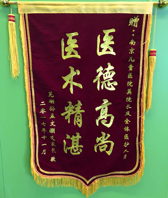 赠:南京儿童医院莫院长及全体医护人员医德高尚 医术精湛芜湖孙孟文灏及家长敬二零一七年十一月