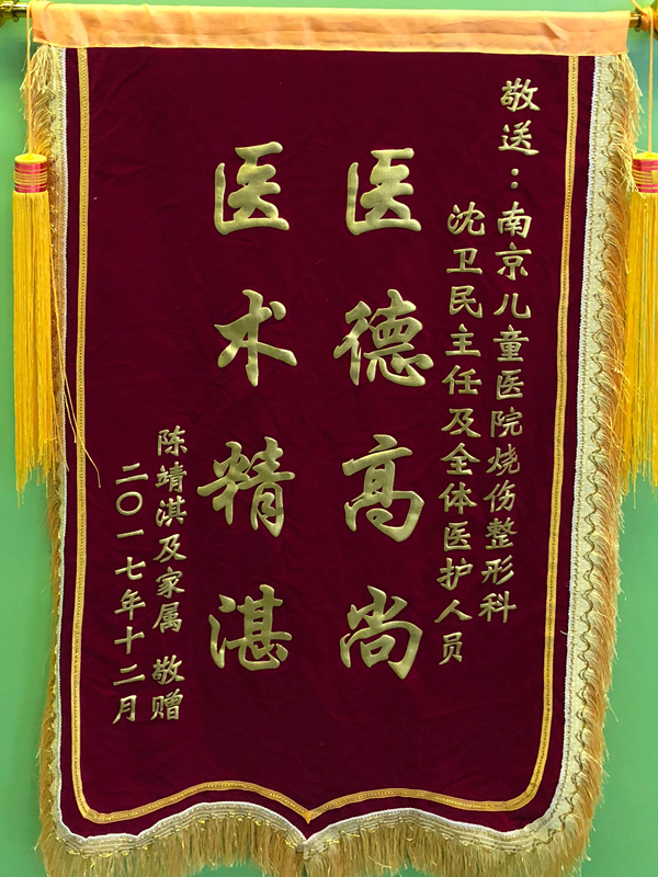 敬送:南京儿童医院烧伤整形科沈卫民主任及全体医护人员