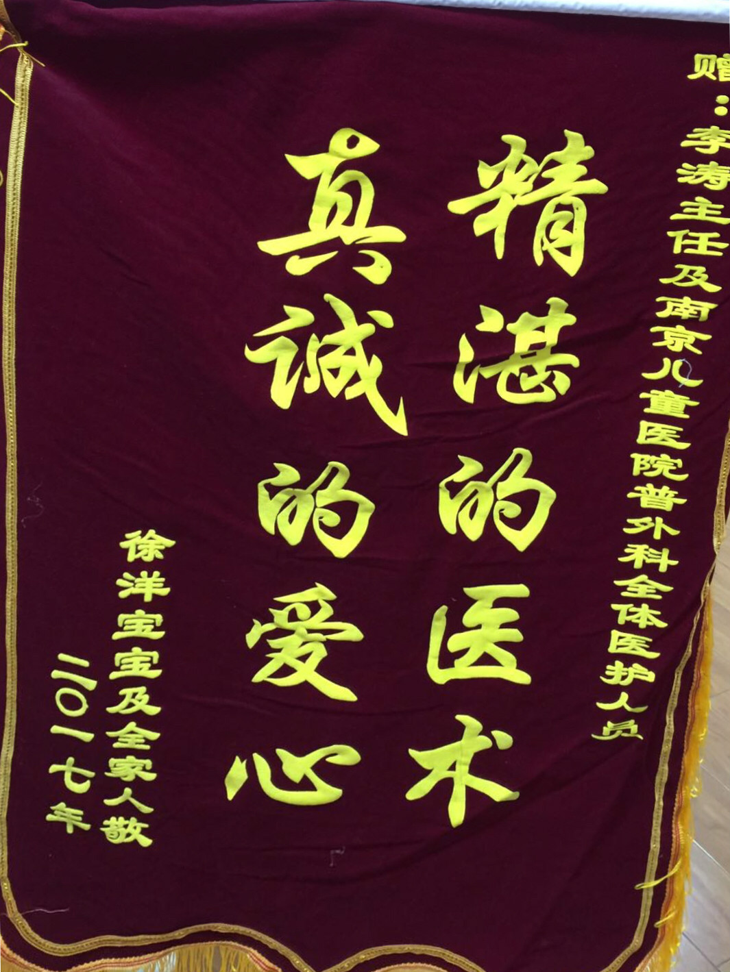 赠:李涛主任及南京儿童医院普外科全体医护人员