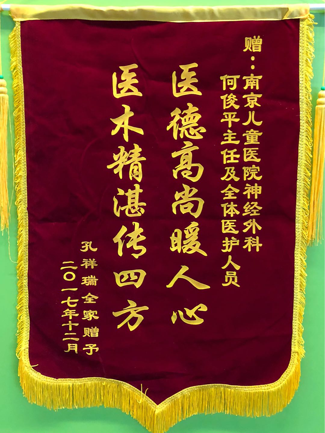 赠:南京儿童医院神经外科何俊平主任及全体医护人员