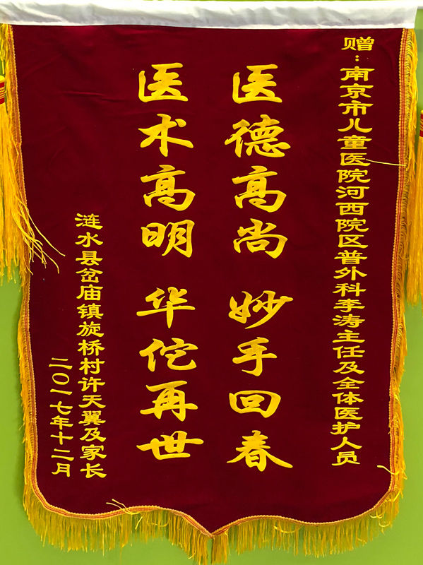 赠:南京市儿童医院河西院区普外科李涛主任及全体医护人员
