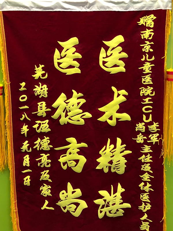 赠南京儿童医院ICU李军 肖岳主任及全体医护人员