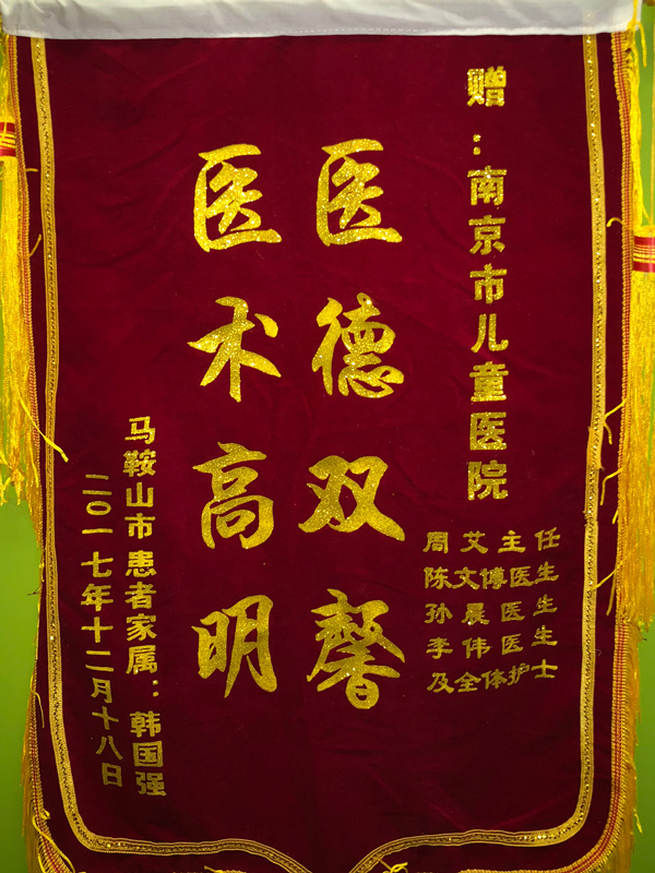 赠:南京市儿童医院周艾主任 陈文博医生 孙晨医生 李伟医生及全体护士