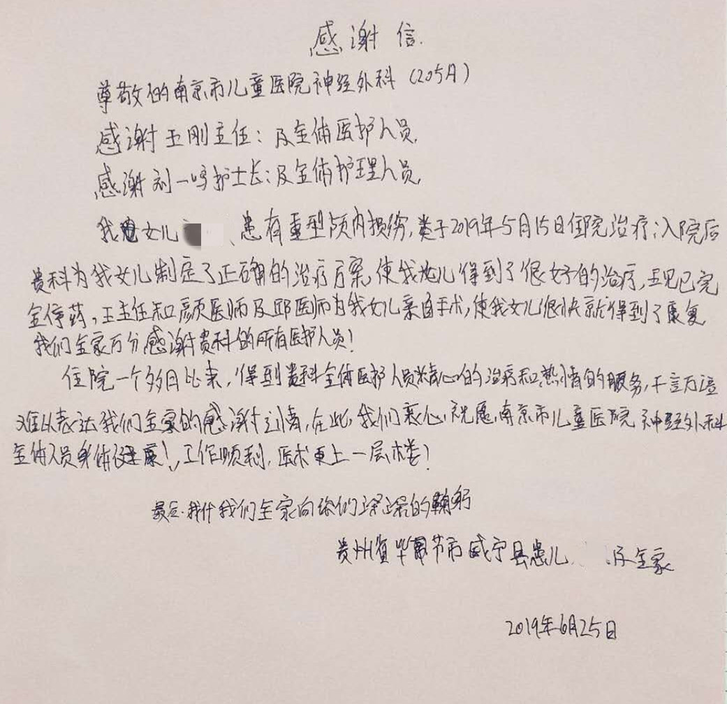 感谢神经外科王刚 刘一鸣及全体医护人员