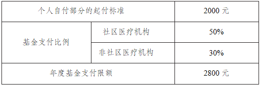 一个待遇年度内,享受完门诊统筹待遇后,继续发生的门(急)诊医疗费用,个人自付2000元以上部分,在社区医疗机构就诊的,基金支付50%,在非社区医疗机构就诊的,基金支付30%,年度基金支付限额2800元。