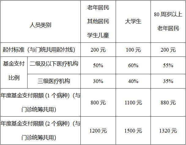 在定点医疗机构门诊发生的病种医疗费用,需个人先行支付的部分,由个人先按规定比例自付后,再按规定的待遇政策执行。其中,老年居民、其他居民基金支付比例为80%,学生儿童、大学生基金支付比例为85%。