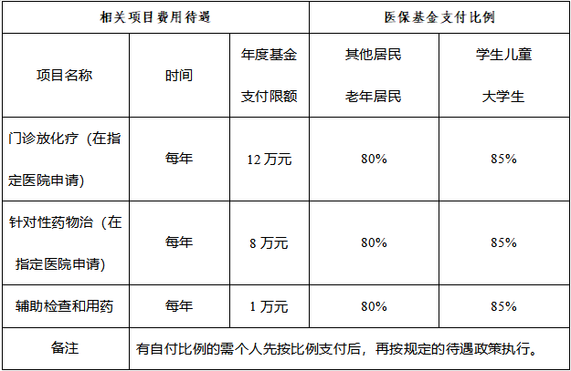 门诊高费用补偿待遇表