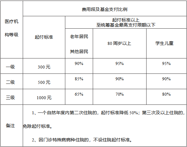 门诊统筹待遇表