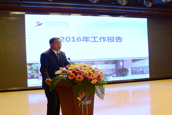 会上,金红岩副主席首先向大会报告了工会2016年度工作总结。随后,黄松明院长做了医院2016年工作报告及2017年工作计划的报告。黄院长指出2016年,医院全面落实中央《关于加强儿童医疗卫生服务改革与发展的意见》的新要求,学习贯彻习近平总书记在“全国卫生与健康大会”的重要讲话精神,在省市卫计委的正确领导和指导下,以河西院区建设为契机,坚持医疗质量与安全常抓不懈,科教与品牌建设持之以恒,党风廉政与行风建设警钟长鸣。全院职工凝心聚力、锐意进取,促进医院整体水平再上新台阶。全年门急诊量229.3万人次,出院病人6.97万人次,全院手术22804人次。2017年是深化医药卫生体制改革的攻坚年,也是91直播