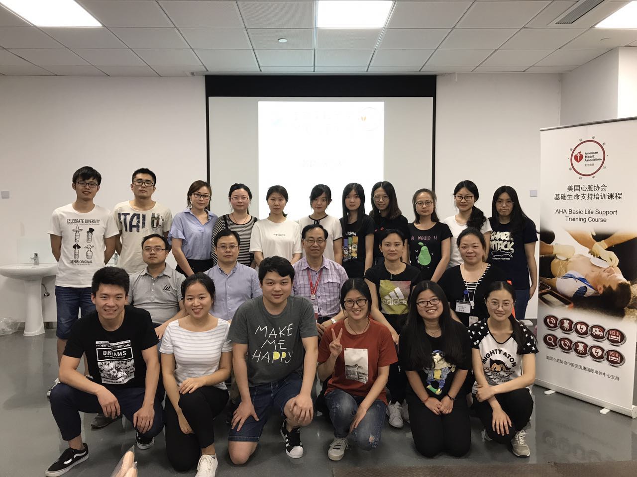 本次导师培训班邀请来自香港美国心脏协会心血管急救国康国际培训中心的主任导师江国仪教授及来自上海健康医学院培训经验丰富的沈玲、王燕导师。通过标准化的CPR、急救和除颤仪(AED)的培训和考核后,91直播 13名老师成为授权基础生命支持(BLS)培训师。