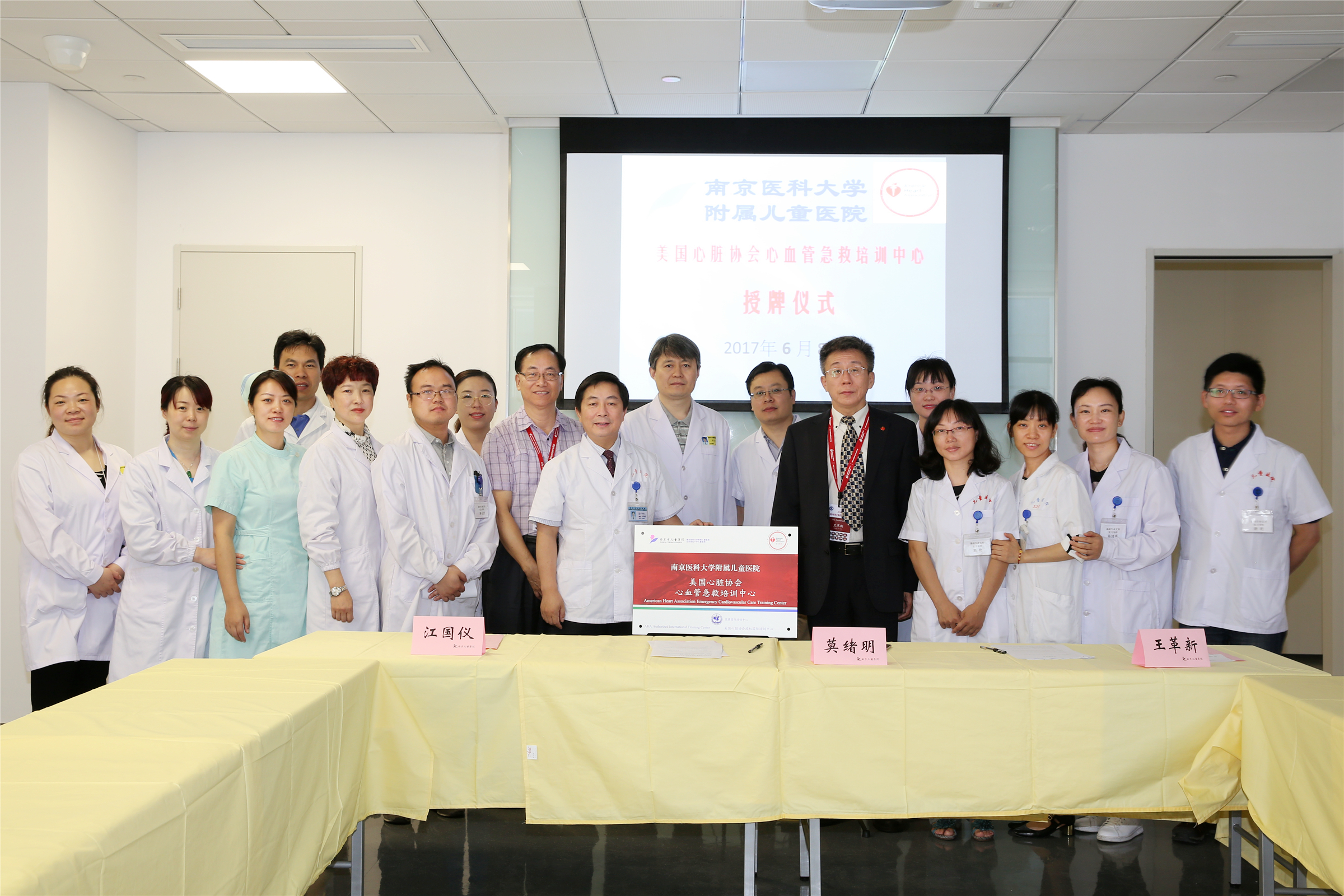 为了让更多医务人员及普通民众受益,91直播 通过积极筹备和申请,经过美国心脏协会(AHA)同一套教材、同一张证书、同一个培训、全世界认可”的严苛质量审核,“南京医科大学附属儿童医院美国心脏协会心血管急救培训中心”宣告成立,并于6月8日举行签约和授牌仪式,中心成立后可提供基础生命支持(BLS),儿童高级心血管支持(PALS)等急救课程。