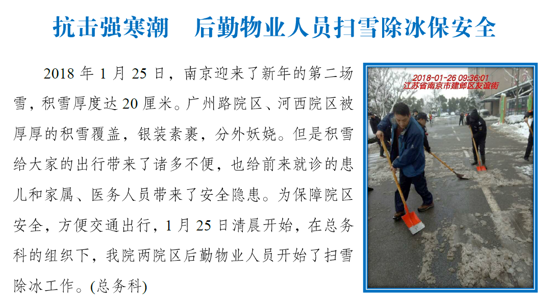 抗击强寒潮 后勤物业人员扫雪除冰保安全