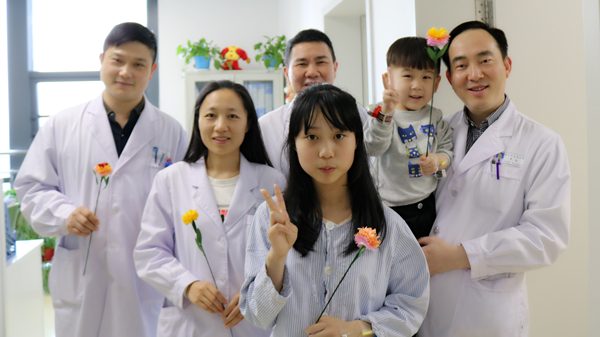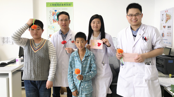 图片故事:来自云南的阿福小朋友为在院期间帮助过他的医生和护士们送上水彩画和康乃馨