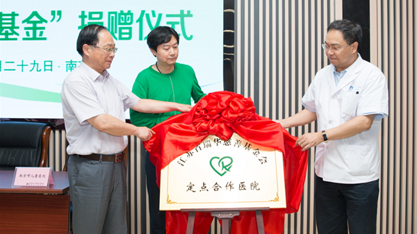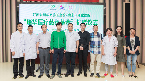 5月29日下午,南京市儿童医院、南京儿童医院医学发展医疗救助基金会与江苏省瑞华慈善基金会共同设立“瑞华医疗慈善基金”,用于贫困家庭医疗救助并设立儿科住院医师规范化培训学员奖学金。捐赠仪式在南京市儿童医院举行,南京儿童医院院长黄松明、南京儿童医院医学发展医疗救助基金会理事长金福年、江苏省瑞华慈善基金会理事长张建斌签署捐赠协议。