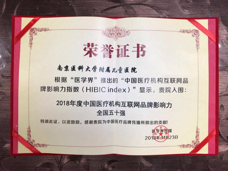 近日,在由医学界传媒、中国医疗自媒体联盟联合主办的第二届医疗品牌建设与传播高峰论坛暨第四届中国医院宣传年会上,组委会联合新媒体大数据权威平台清博指数、知名全国就医指导平台微医和复旦大学健康传播研究所共同发布“中国医疗机构互联网品牌影响力指数(HIBIC index)”排行榜,对全国4000多家医疗机构品牌宣传工作进行盘点和评价。经过综合评议,91直播 入围“2018中国医疗机构互联网品牌影响力全国五十强”(排名第41),“2018中国医疗机构互联网品牌影响力妇儿专科全国十强”(排名第4),“2018中国医疗机构互联网品牌影响力江苏省十强”。(党群工作部)
