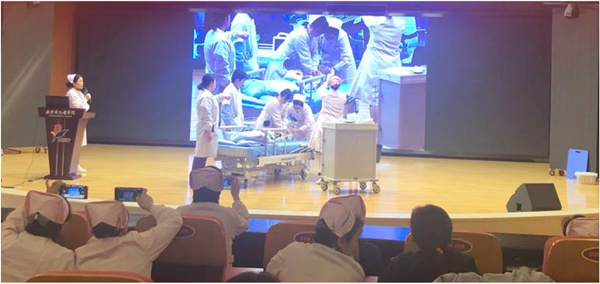 2018年1月23日下午,南京市儿童医院护理部在两院区组织了护理部工作总结暨安全警示教育视频会议。会议由护理部彭明琦副主任主持,首先急诊科蔡榕科护士长就“临床危重病人的风险识别与抢救配合”对全院护士进行培训,并由急诊团队为大家进行“团队急救配合情景演练”,生动形象地展示了护理急诊急救团队的整体风貌,使全院护士能够进一步掌握在紧急情况下如何对危重病人进行评估和救治。