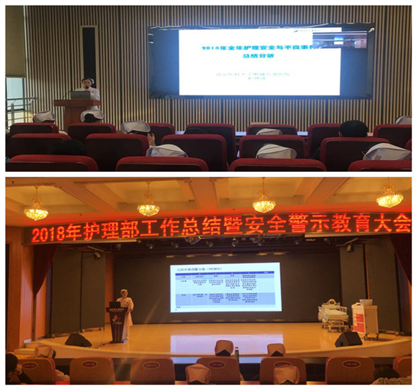 随后,护理部谢爱玲副主任对2018年发生的护理不良事件进行分析总结,列出3个典型案例与大家共同讨论,在场护理同仁纷纷提出自己的看法和意见,对不良事件的防范和处理有了更直观的认识,以此激发护理人员对护理工作的安全意识。
