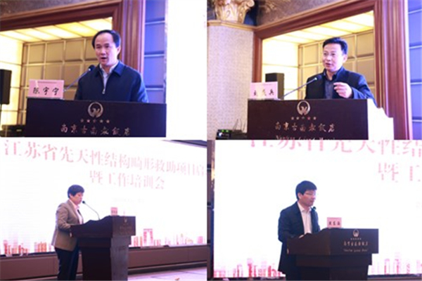 首先,院党委书记陈宇宁作欢迎致辞,对与会领导和嘉宾的莅临表示诚挚欢迎。江苏省卫生健康委妇幼处刘益兵处长代表省卫健委事务处对国家妇幼司及基金会表示感谢,他表示将坚决贯彻执行国家要求指示,严格规范,做好救助项目。中国出生缺陷干预救助基金会薛敬洁副秘书长对先天性结构畸形救助项目作简要介绍,并祝福江苏省顺利开展先天性结构畸形救助项目,为促进出生缺陷干预救助公益事业发展、实现健康中国梦做出积极贡献。国家卫生健康委妇幼司出生缺陷处燕东海副处长在讲话中强调,江苏省应加强组织实施,尽快开展先天性结构畸形救助工作,创新思路方法,规范服务供给,提高质量效能,同时加强项目宣传,不断扩大项目成效和社会影响力,让党和政府的好政策惠及更多家庭。91直播 唐维兵教授代表专业技术人员宣读医务工作者倡议书,表示将深入开展出生缺陷防治的社会宣传和健康教育,同时开展相关人员技术培训和业务指导,积极为符合救助条件的患儿提供医疗费用补助,造福广大患儿、家庭和社会。